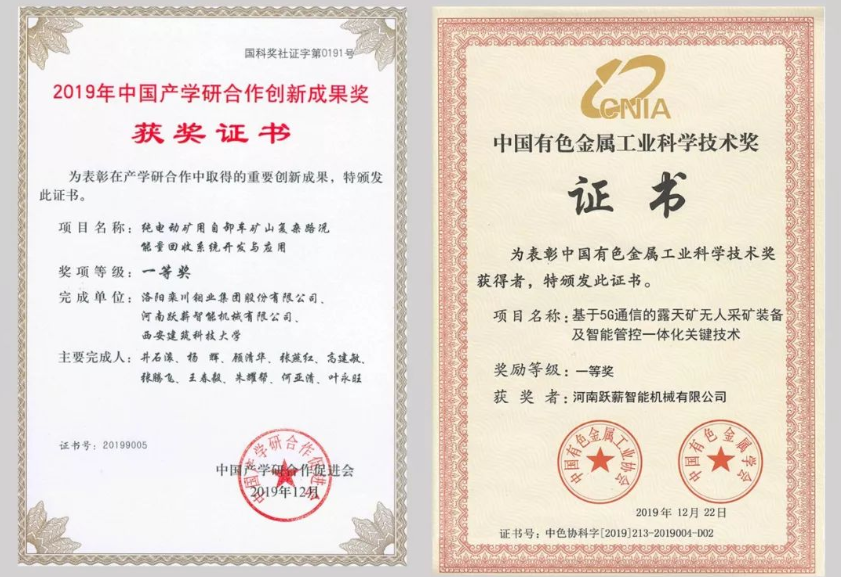 On December 29, 2019, good news came from the 13th China Industry University Research Cooperation Innovation Conference hosted by the China Association for the Promotion of Industry University Research Cooperation held in Beijing. The "Development and Application of Energy Recovery System for Pure Electric Mining dump trucks in Complex Road Conditions" project independently developed by Henan Yuexin won the first prize of China Industry University Research Science and Technology Innovation Achievement Award in 2019. This is another national level first prize won by Henan Yuexin, following the evaluation of "Key Technologies for Unmanned Mining Equipment and Intelligent Control Integration in Open Pit Mines Based on 5G Communication" as the "2019 China Nonferrous Metal Industry Science and Technology First Prize".