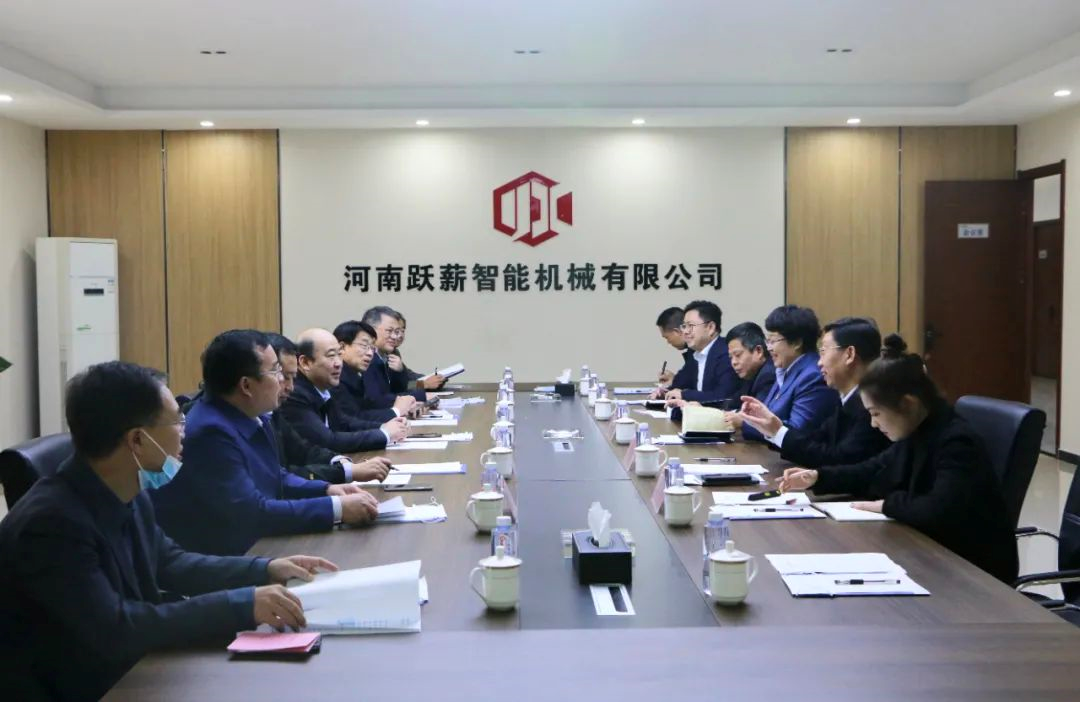 On the morning of November 3rd, Hao Jinghong, Deputy Director of the Henan Provincial Department of Industry and Information Technology, and his delegation visited Yuexin Company for research and guidance. Shi Changxian, Director of the Pingdingshan Municipal Bureau of Industry and Information Technology, and Liu Mingyu, Director of the Demonstration Zone Management Committee, accompanied the research.