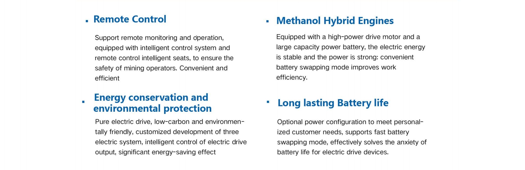 Support remote monitoring and operation,equipped with intelligent control system andremote control intelligent seats,to ensure thesafety of mining operators.Convenient andefficient