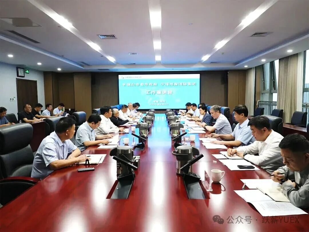 9月4日,平顶山市委书记陈向平率党政与企业代表团访问中国河南国际集团,双方围绕深化企地合作、携手拓展国际市场举行工作会谈。跃薪集团董事长朱耀占随行参会,并与各方代表共话合作、共谋发展。